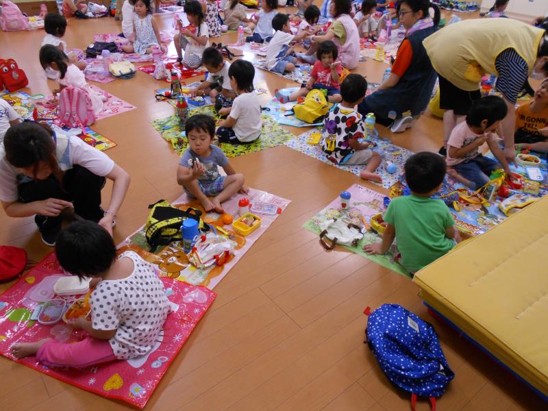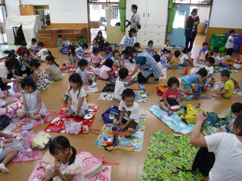 すみれさんゆりさんも、お遊戯室でお弁当をいただきました。