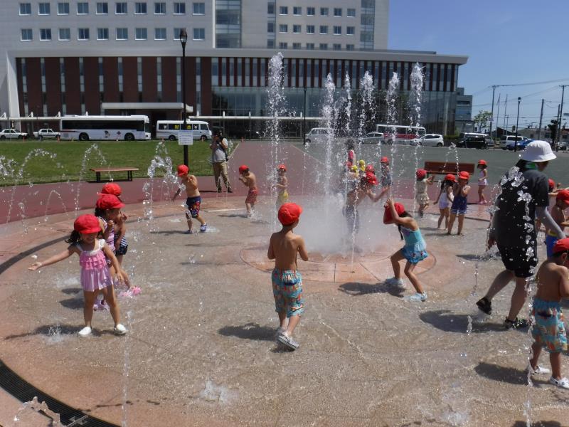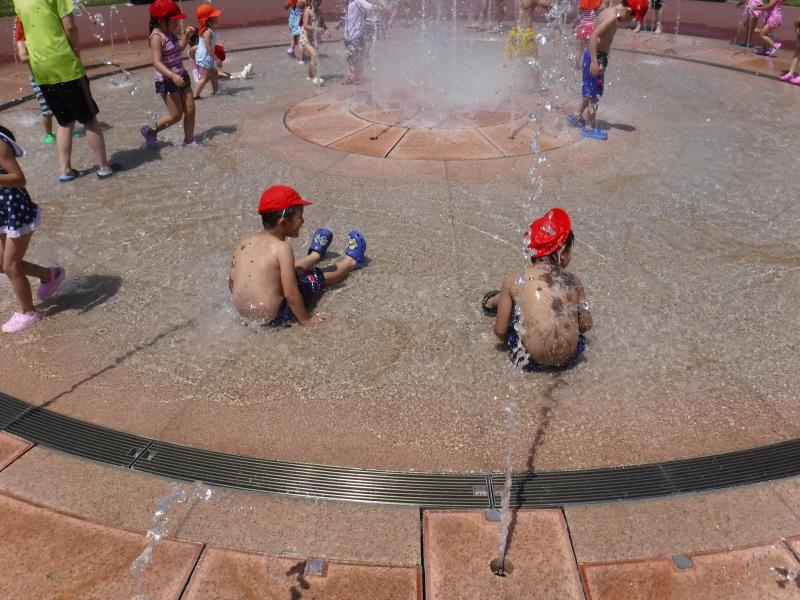 いつ噴水が出てくるかな…わ~!!出た~!!と、大はしゃぎ!