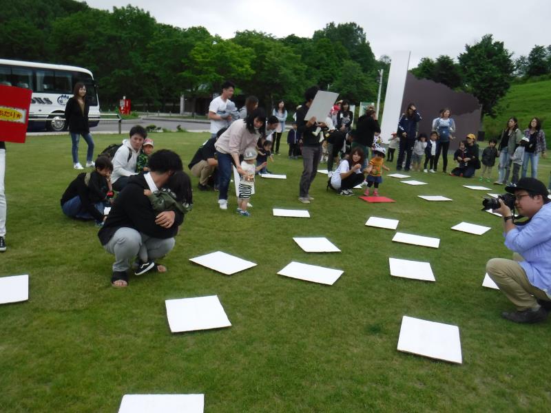 到着してから「おやつ探しゲーム」をし、カードをめくって「あたり」を見つけておやつとジュースをget!