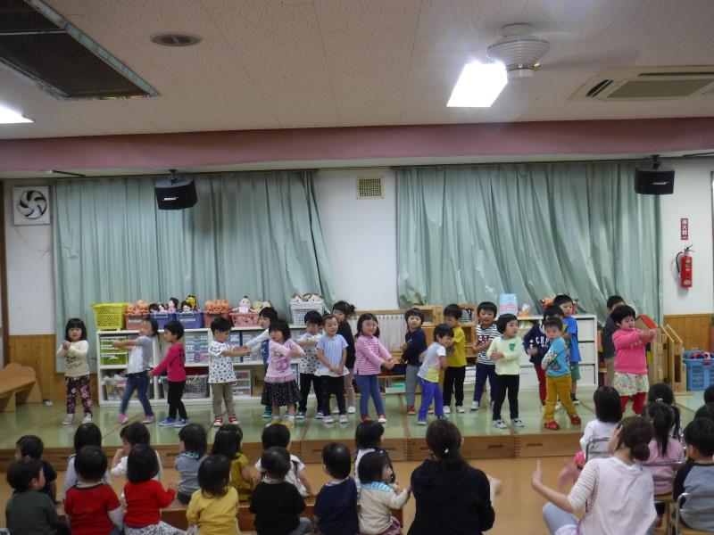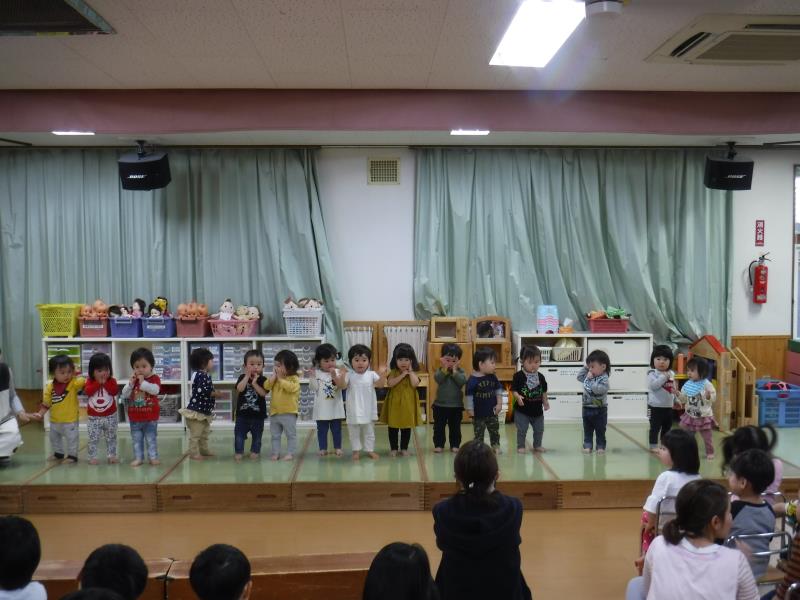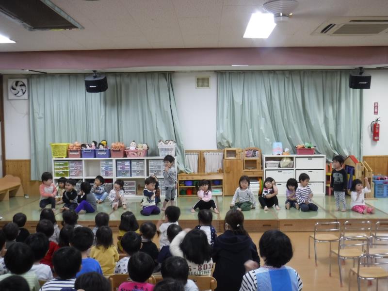 さくらさんはラーメン体操、すみれさんは、やぎさんゆうびん・ぞうさん・スターマンの歌の発表を元気いっぱいにしました。