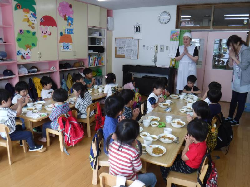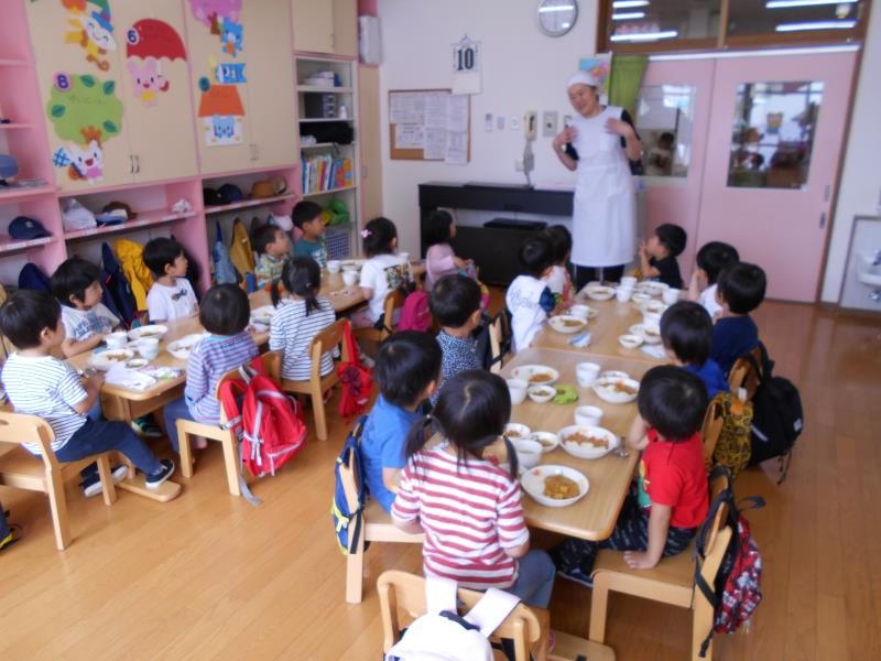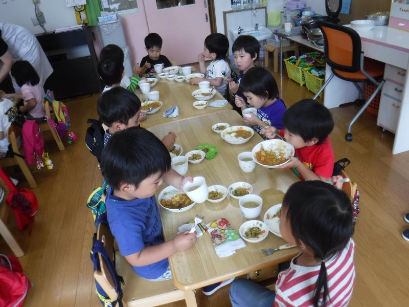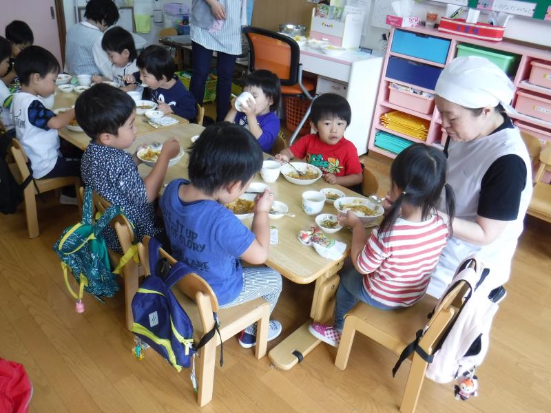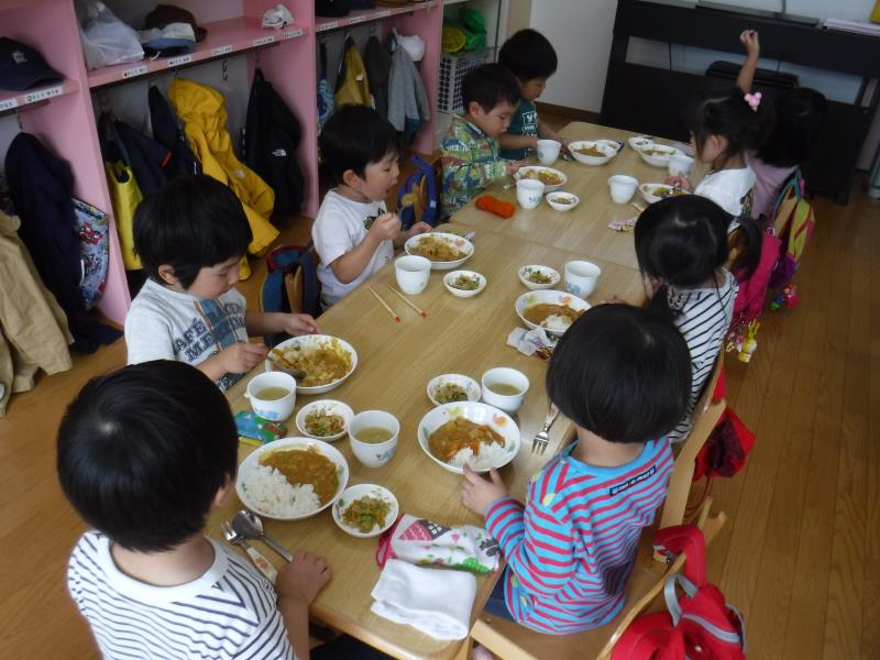 お皿を持って食べることや、スプーンをきちんと持つことを意識しながら、モリモリとカレーライスを食べていたさくらさんでした!