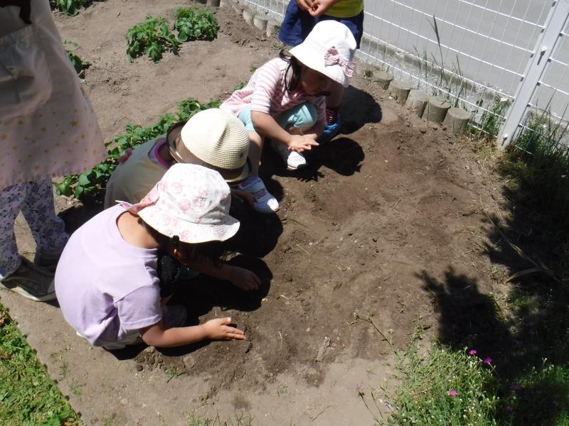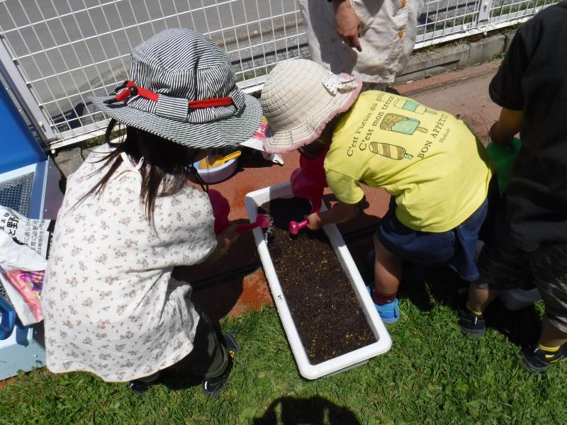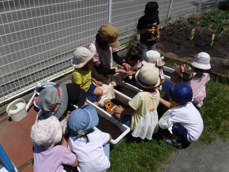 すみれさん、子ども達からひまわりを育てたいと声が上がり、今日はひまわりの種をまきましたよ!