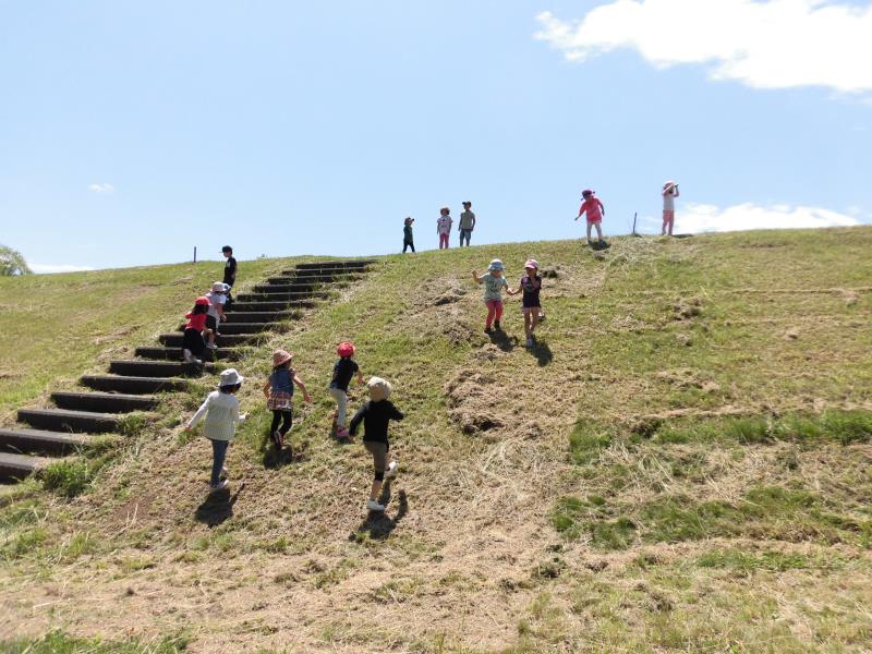 坂を上ったり下りたり、バッタを見つけて捕まえたり!