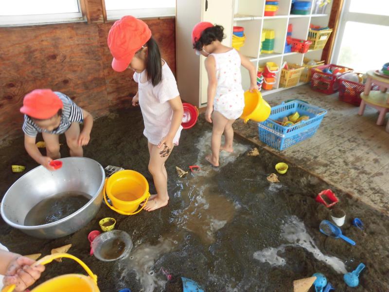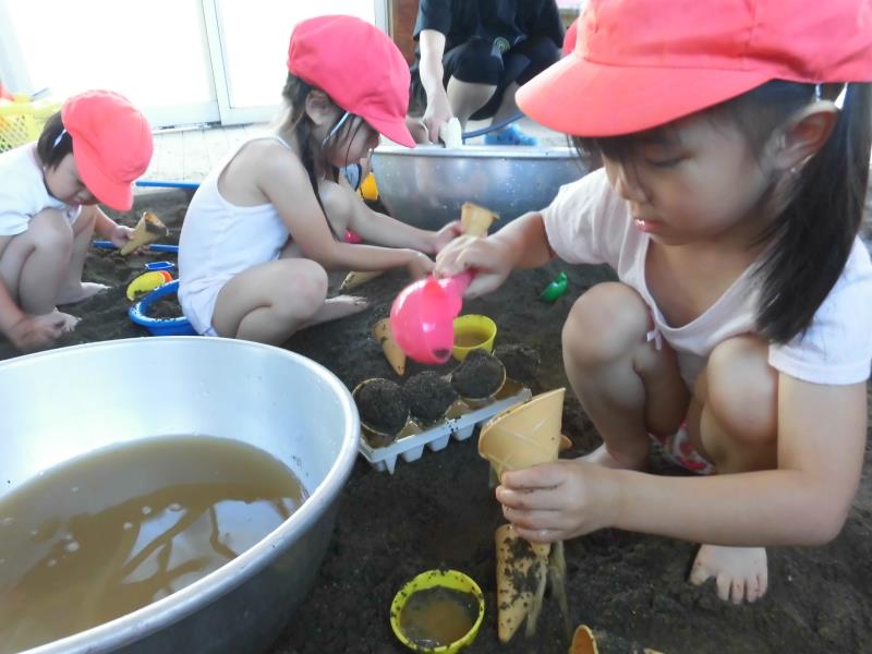 お水を流してダム作りや、アイス屋さんになっていたお友達もいましたよ!