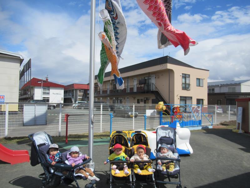 園庭のこいのぼりさんとも仲良く1枚!