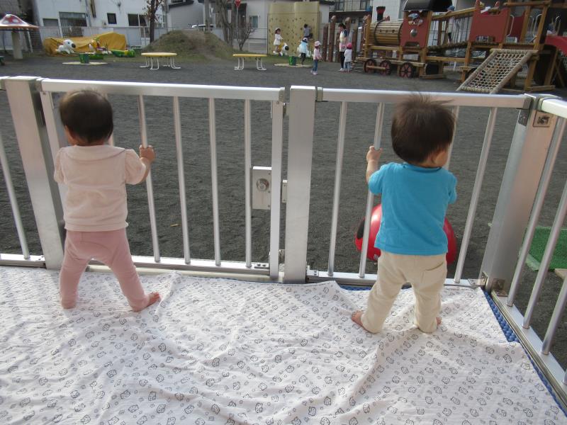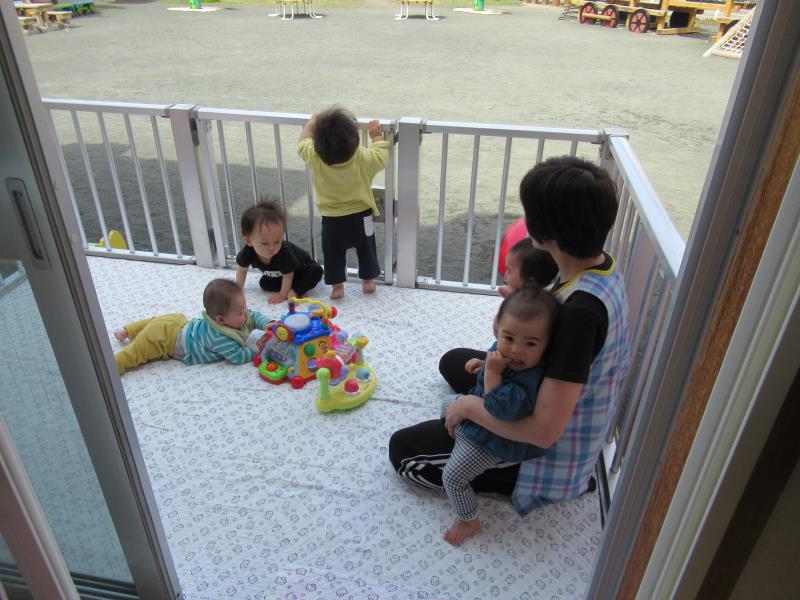 みんなでおもちゃ遊びをしたり、暖かかったのでバルコニーに出て外気浴をしていましたよ!