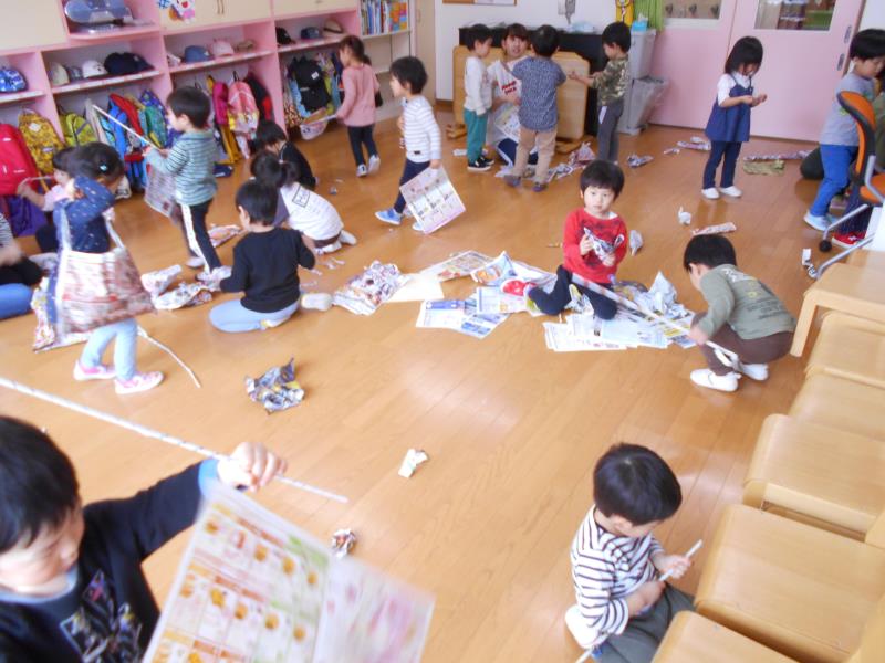 さくらさん、お部屋で紙遊びをして遊びました。