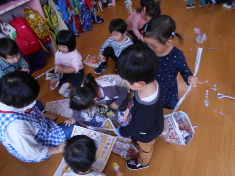 他にも、カバンを作ってもらうとピクニックごっこになって、おにぎりを自分たちで作る姿もみられましたよ。