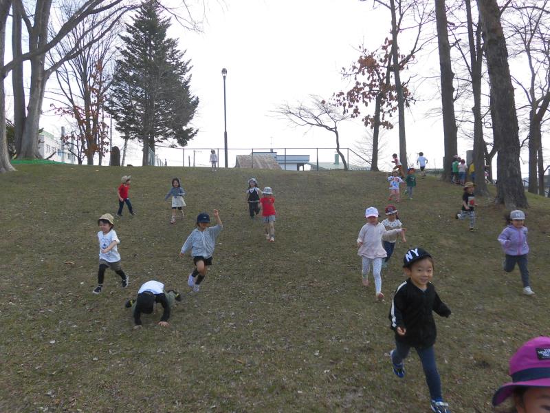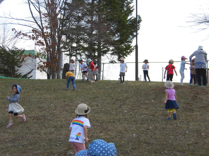 大きな坂を上ったり、走って下りたり…転がって楽しむお友達もいましたよ!