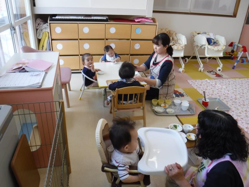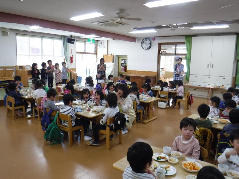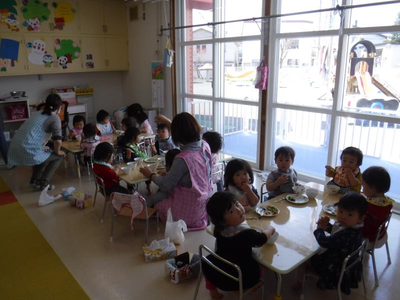 3・4・5歳はお遊戯室で会食です。