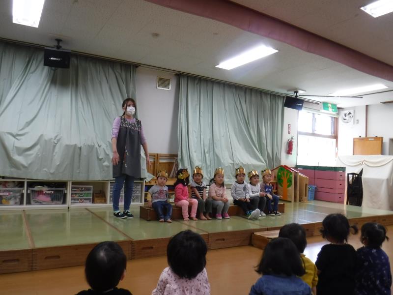 8名が4月生まれですが、お休みのお友達もいたので7名がステージにあがりました。