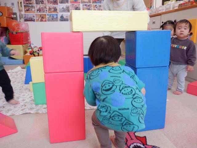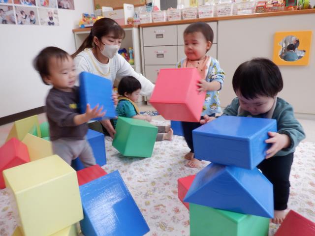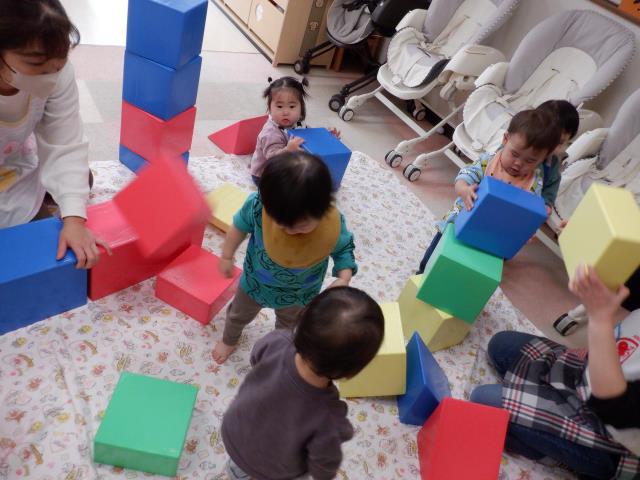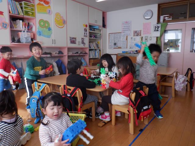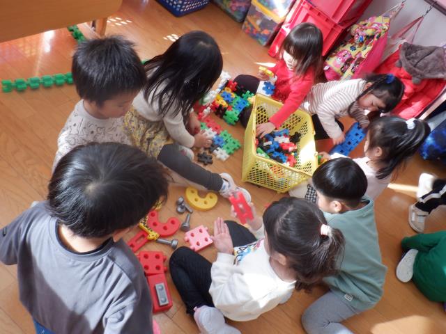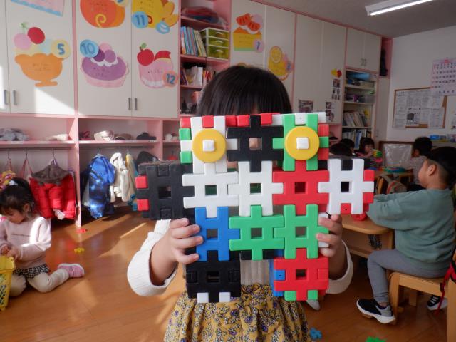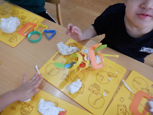 お部屋で粘土遊びやカラフルブロック遊びをしたよ