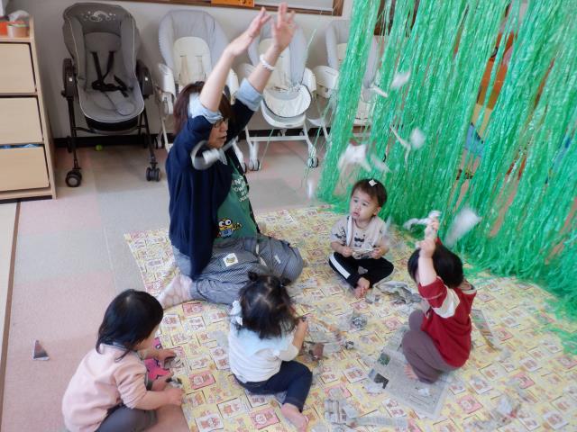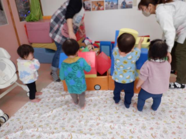 一名のお友達が遊びに来てくれて、お母さんと一緒にシールを貼ったりクレヨンを使って上手に作っていましたよ☆