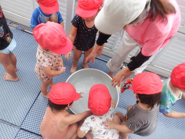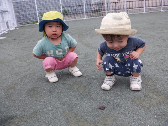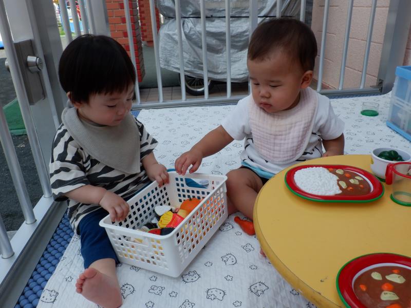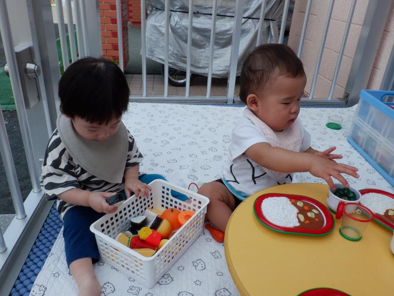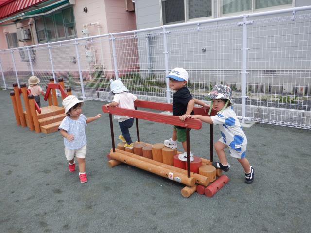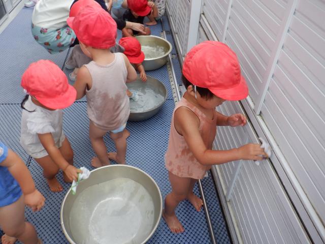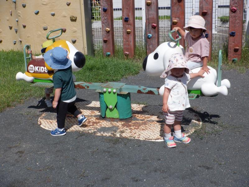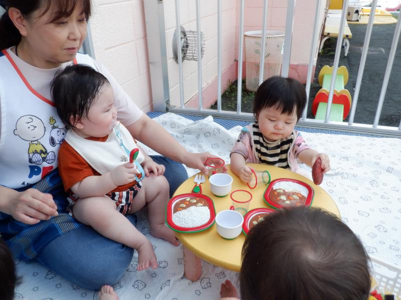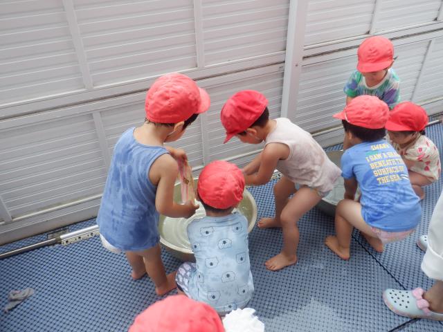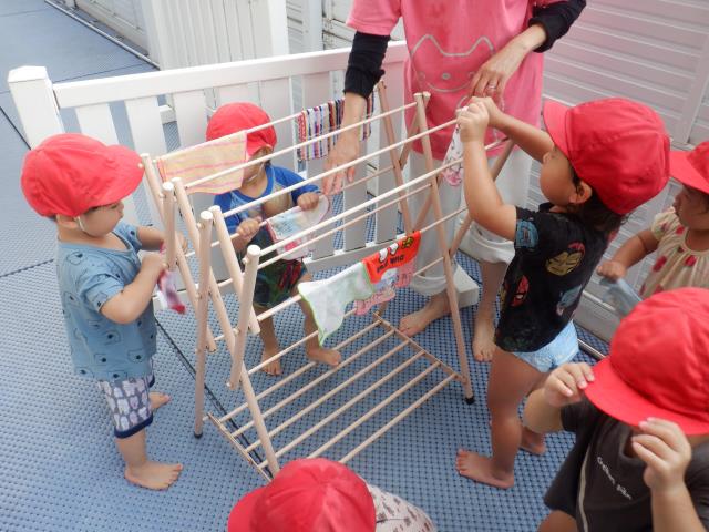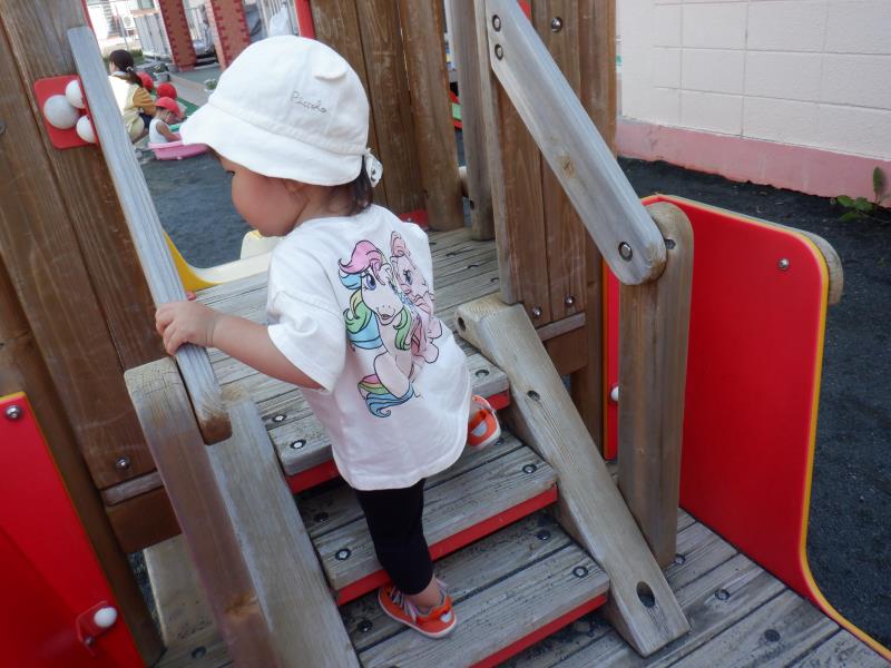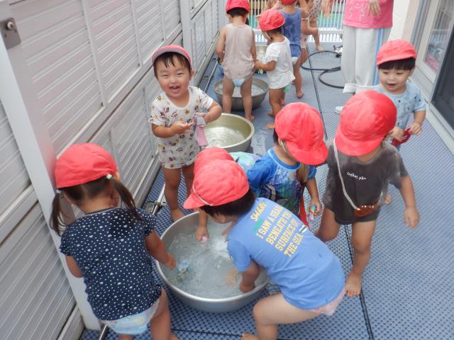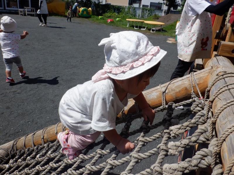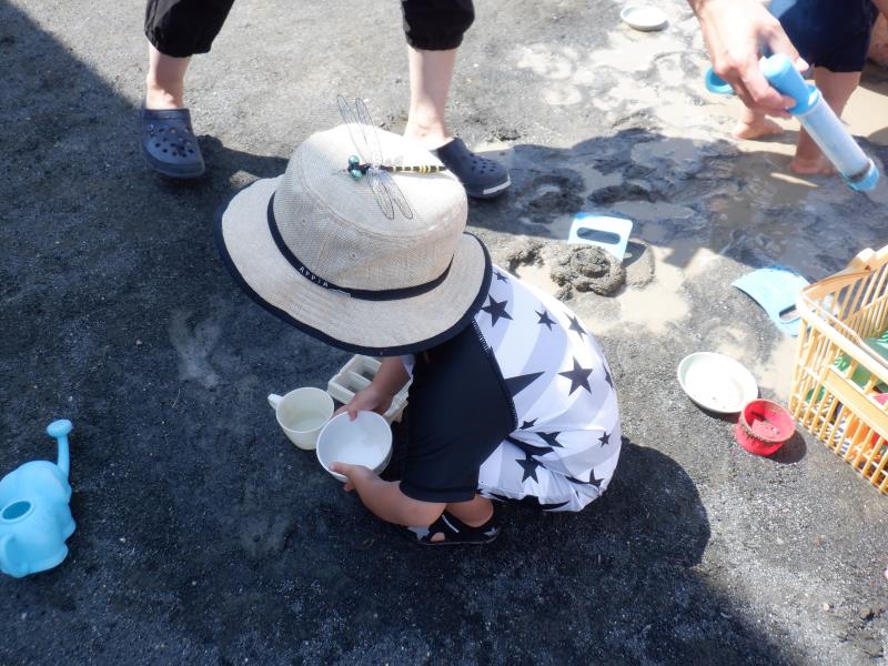 ちゅうりっぷさんが水あそびをしていたので、一緒に水や泥にふれて遊んだり、園庭の遊具で遊んだりと楽しみましたよ♪