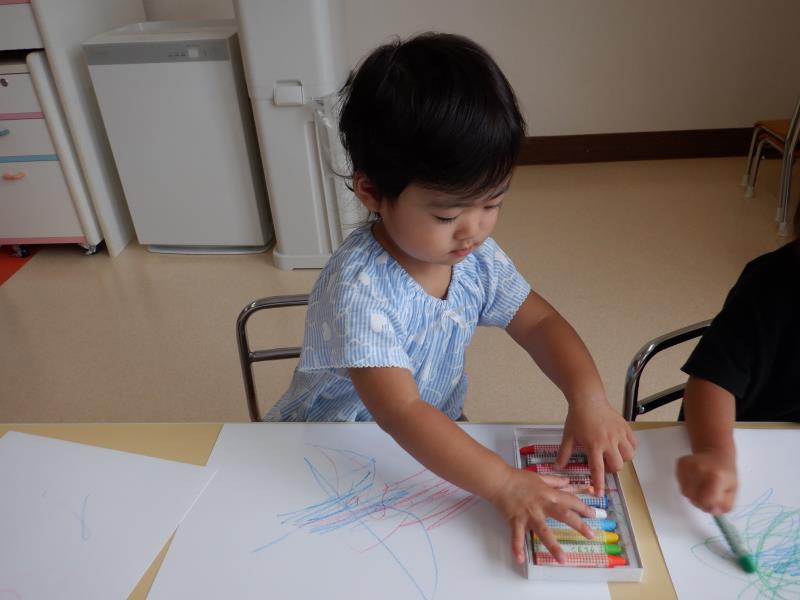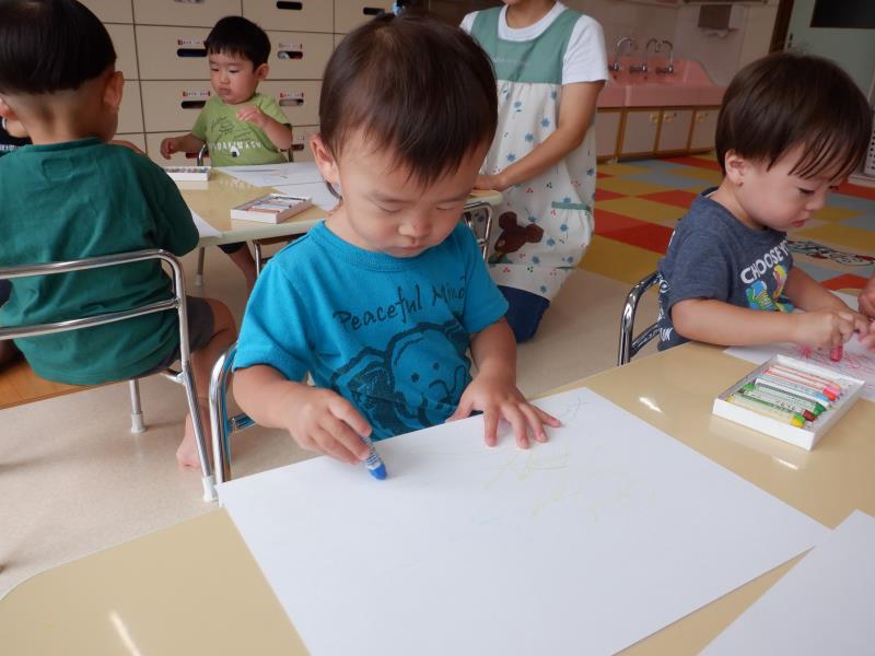 クレヨンを持つ手も、しっかり安定してきましたね。