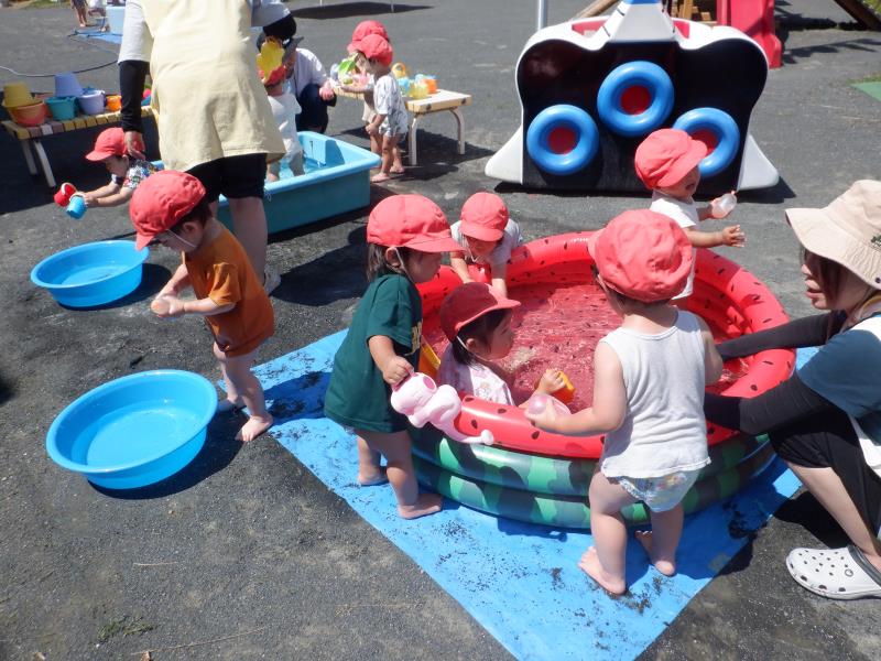 ちゅうりっぷさんも、スイカプールで水あそび!