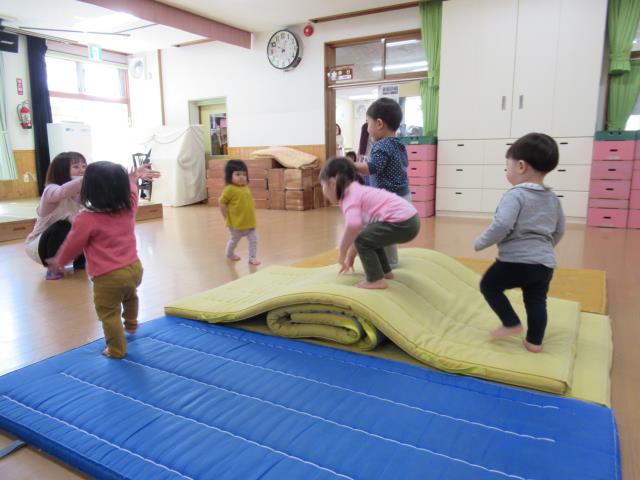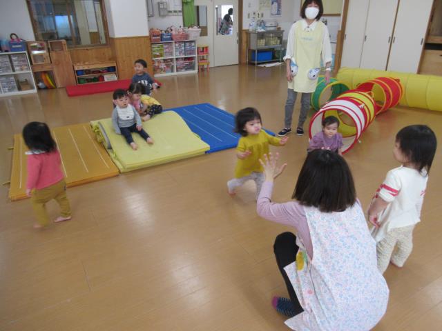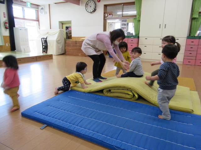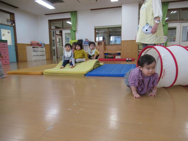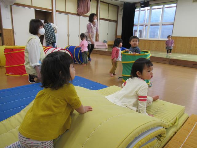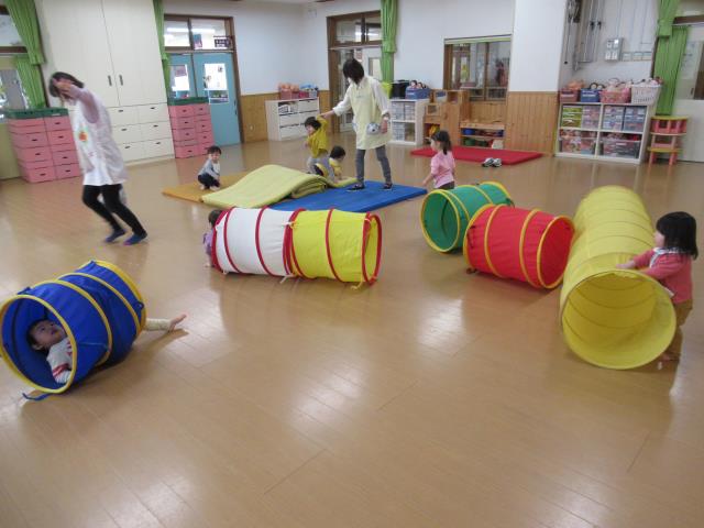 トンネルくぐりやマットで体を動かして、いっぱい遊びました。