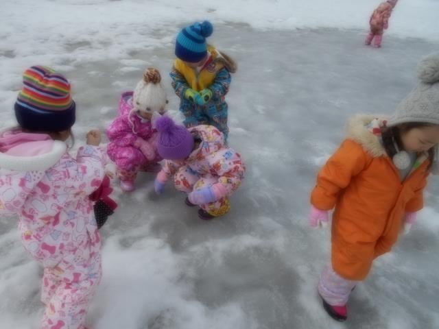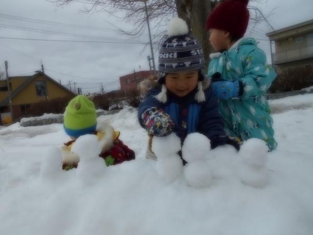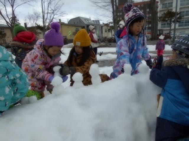 雪の形を作りやすく、丸めて団子やアイスを作り、お店屋さんごっこを楽しむ姿もみられましたよ。