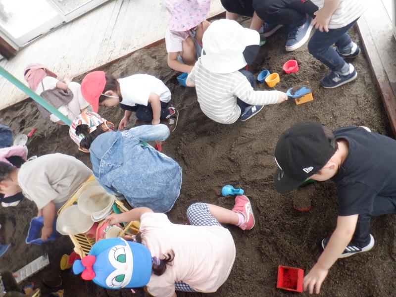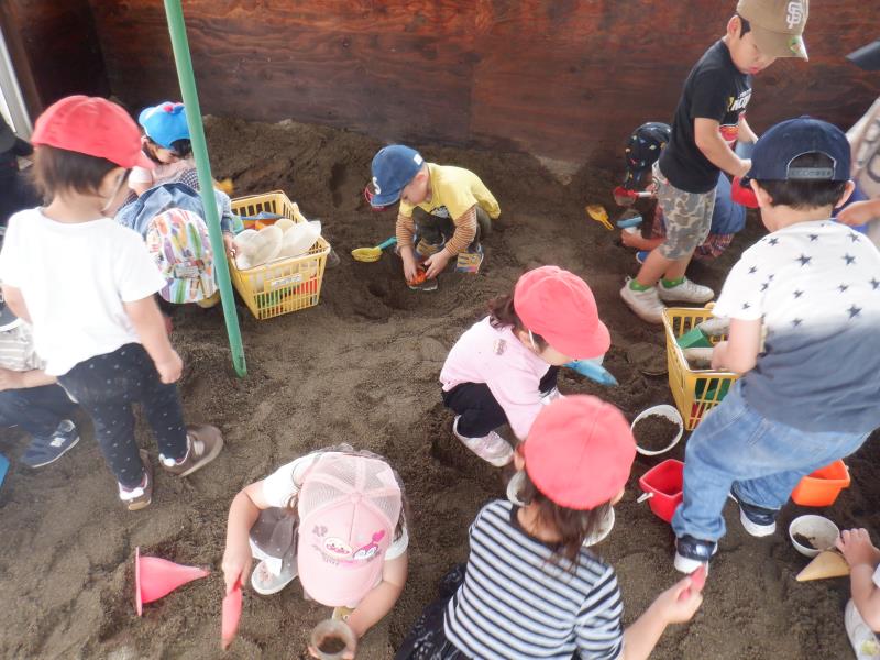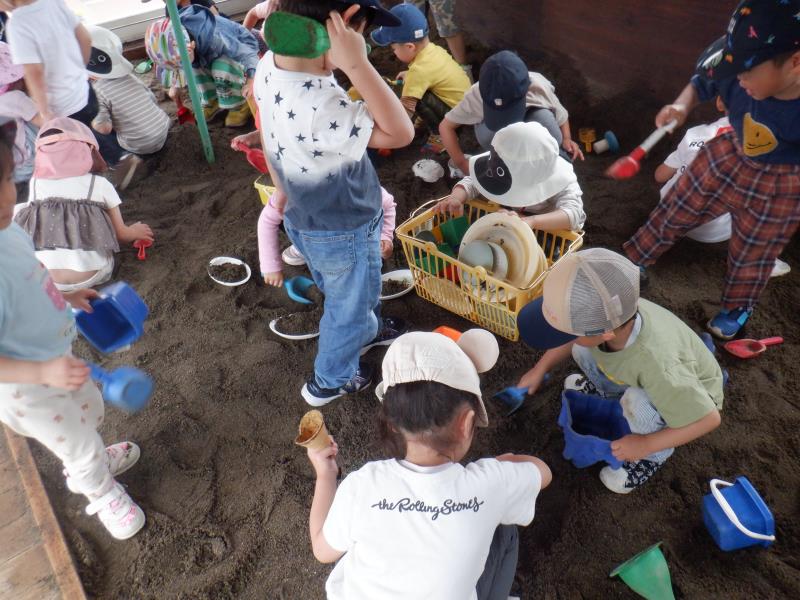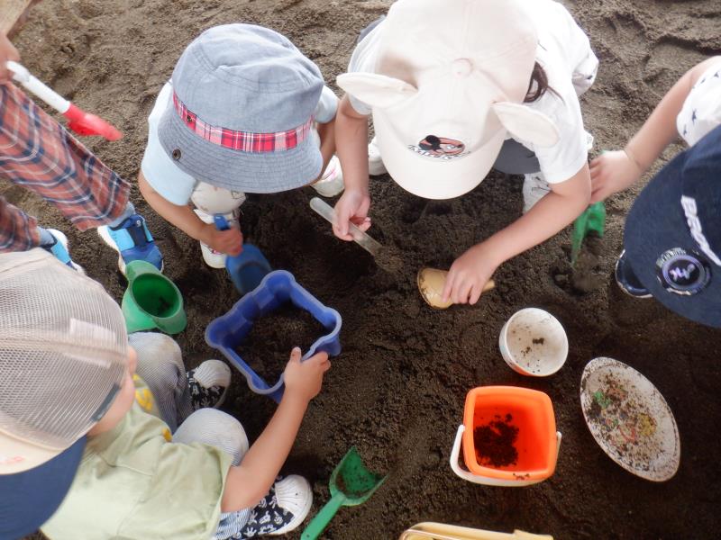 型抜きしたり、アイスやごはんを作って砂あそび!