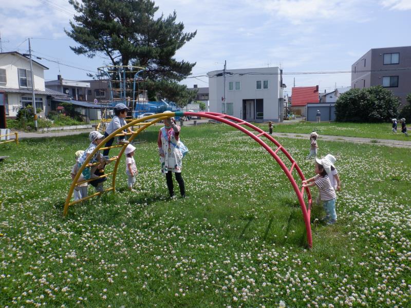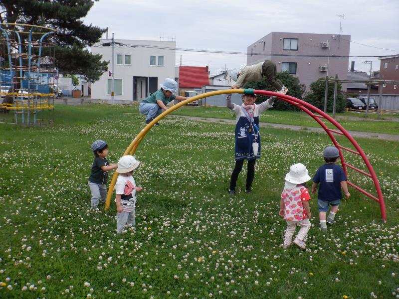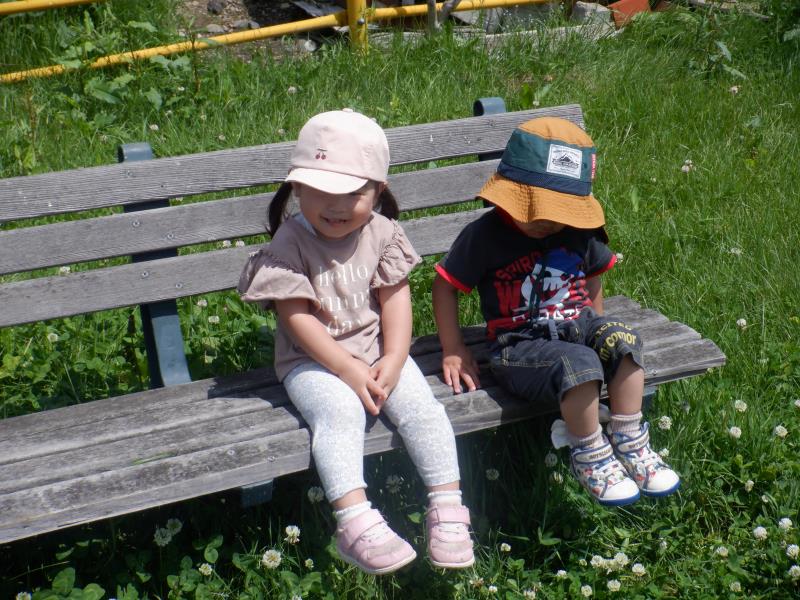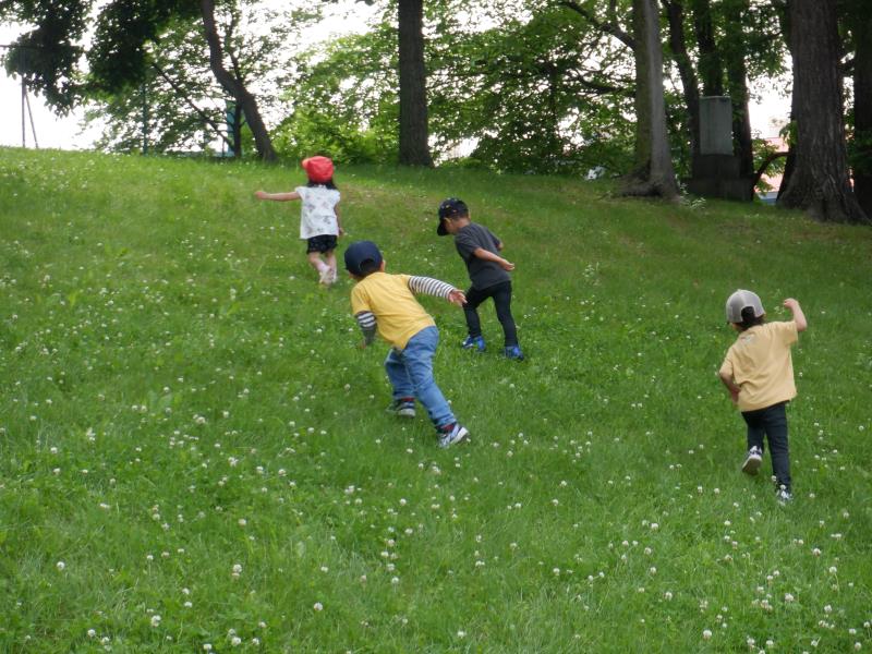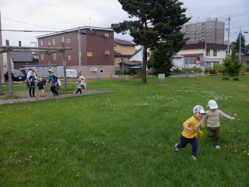 美芳第三公園でちょうちょを追いかけたり、シロツメクサを摘んだりしてきましたよ!