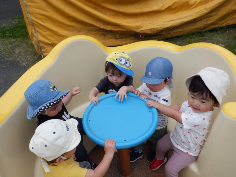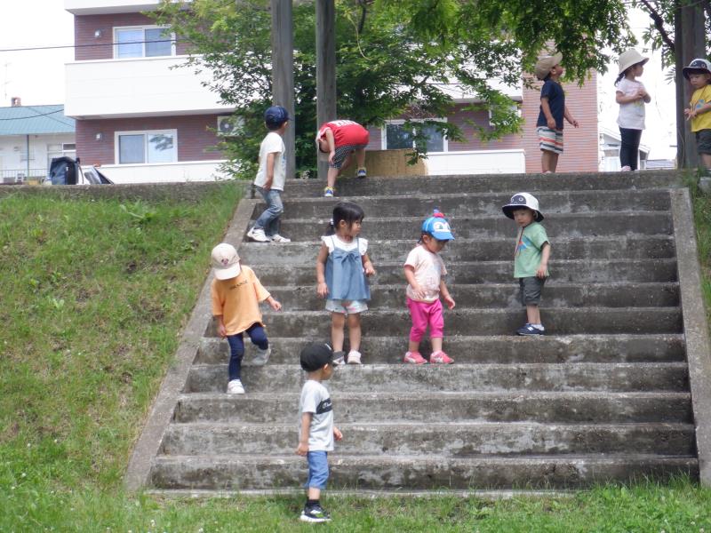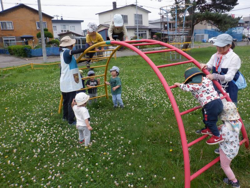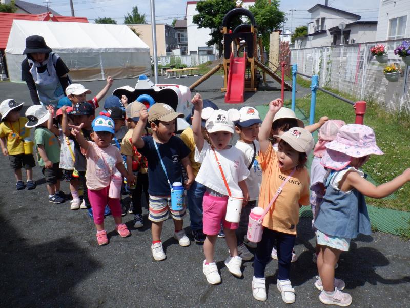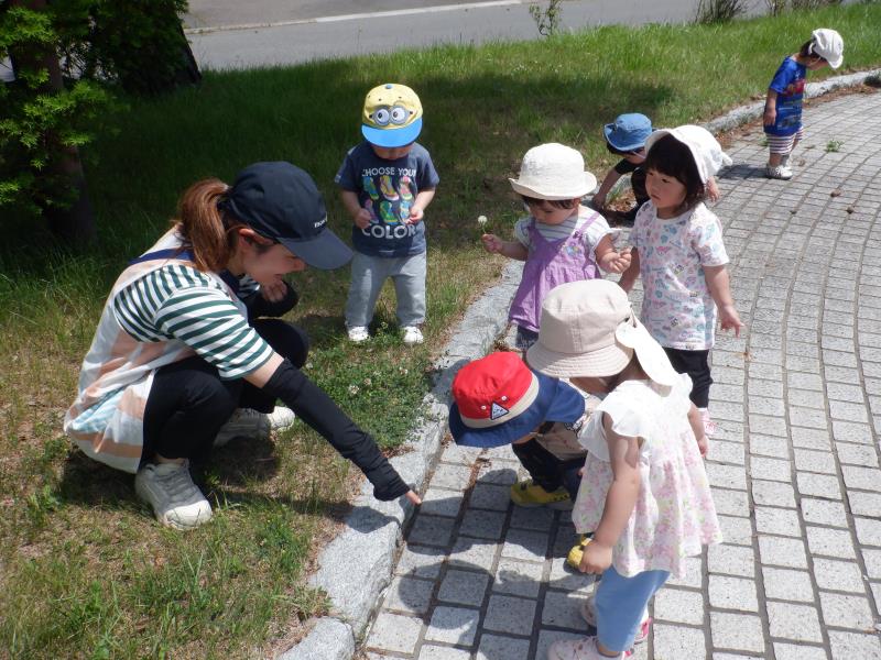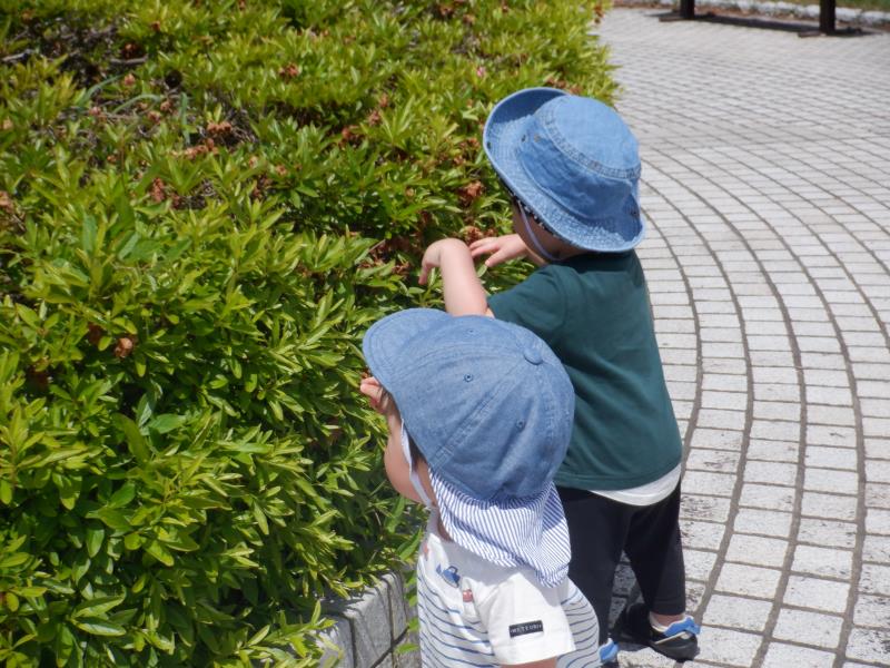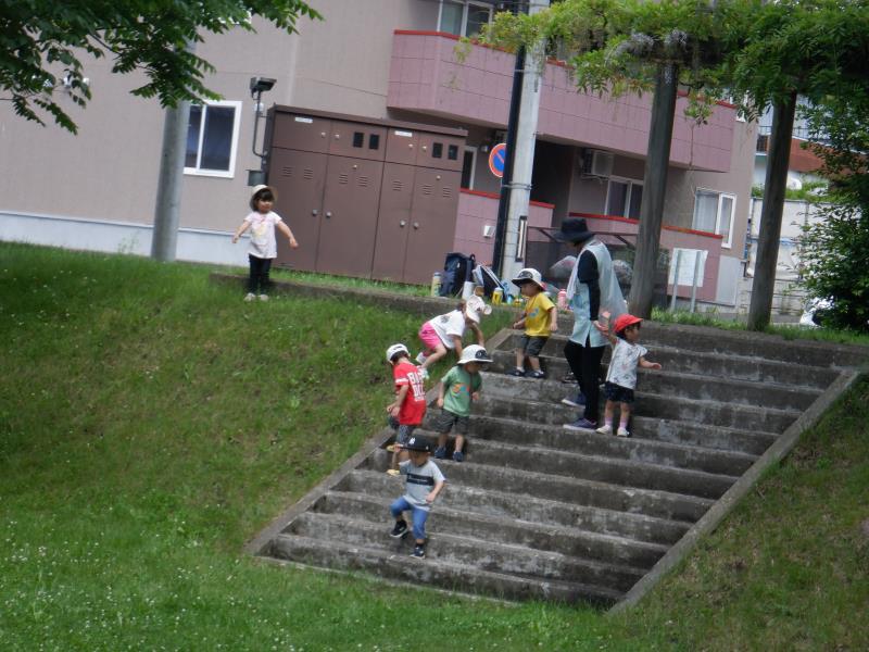 園まわりのお散歩にみんなで手を繋いで出かけた後、園庭で遊びました!