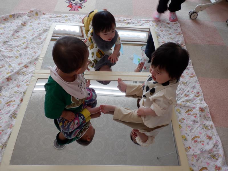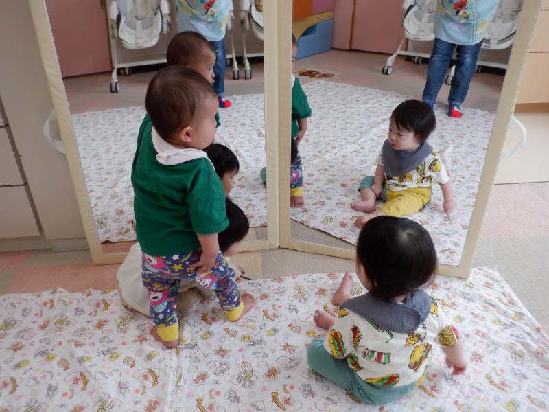 ミラーに乗っかって、自分のお顔を見てうっとり♡
