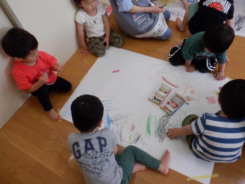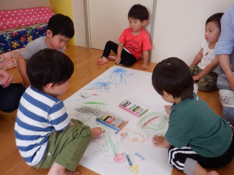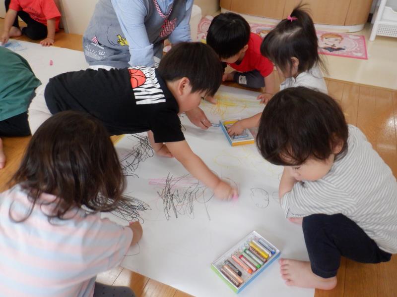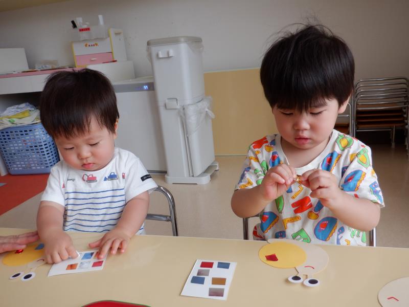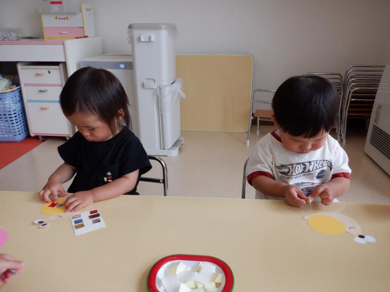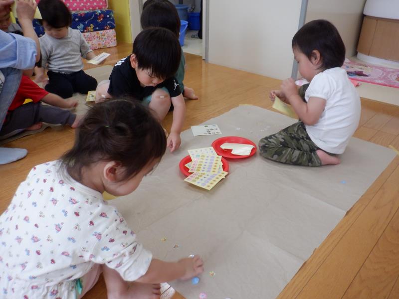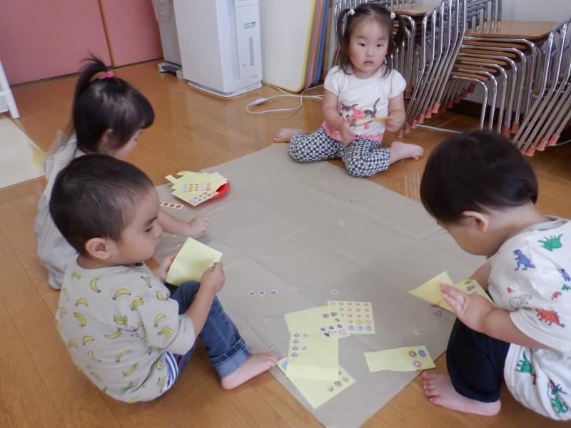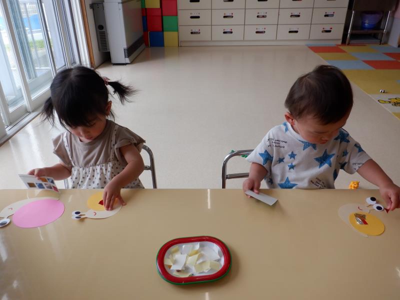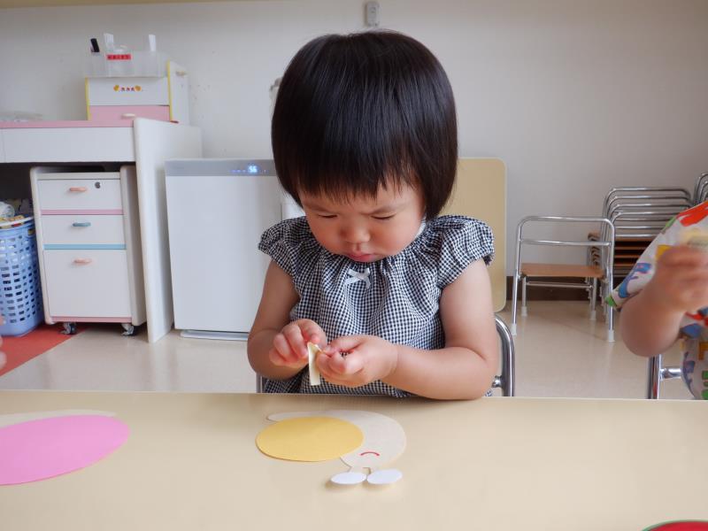 指先を上手に使って、一生懸命貼る姿が可愛いですね♬