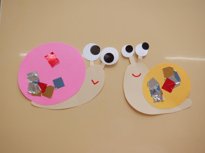 玄関ホールにいるかたつむりさんを見て、かたつむりの製作をしたちゅうりっぷさん!