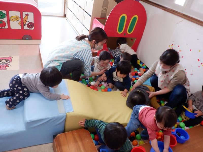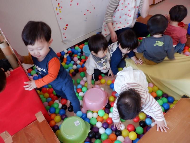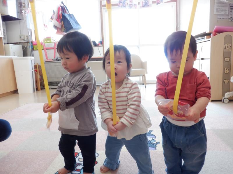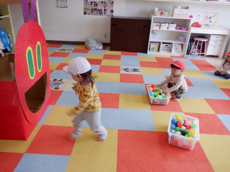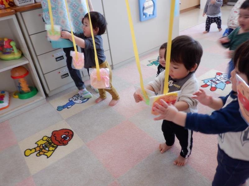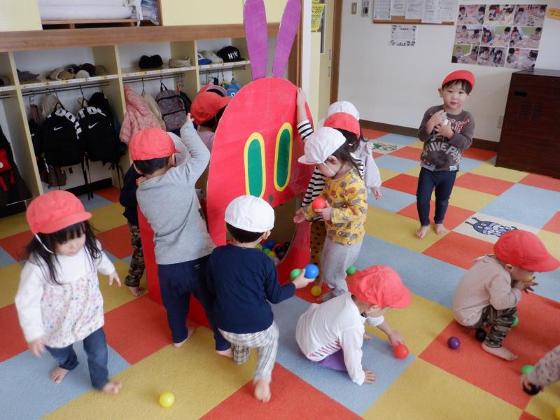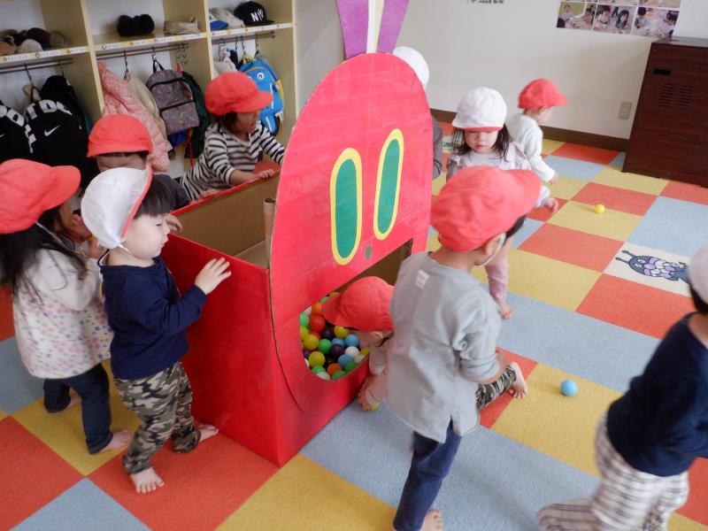 「はらぺこあおむし玉入れゲーム」をしたよ。