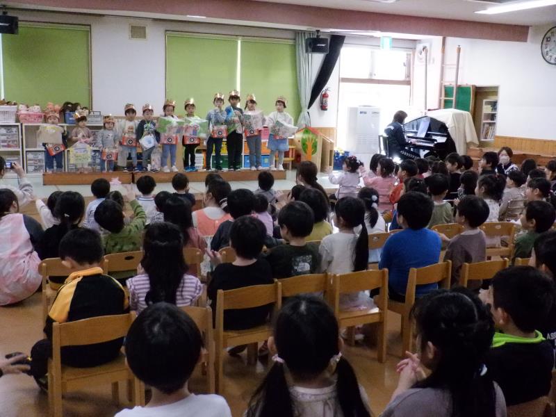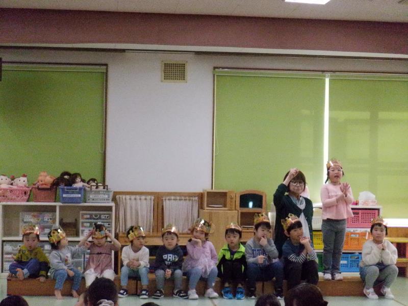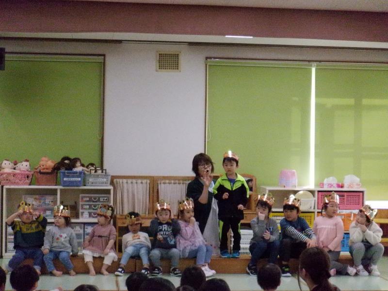 2月のお誕生会にお休みしたお友達も含めて、11名のお友達がステージに上がりました!