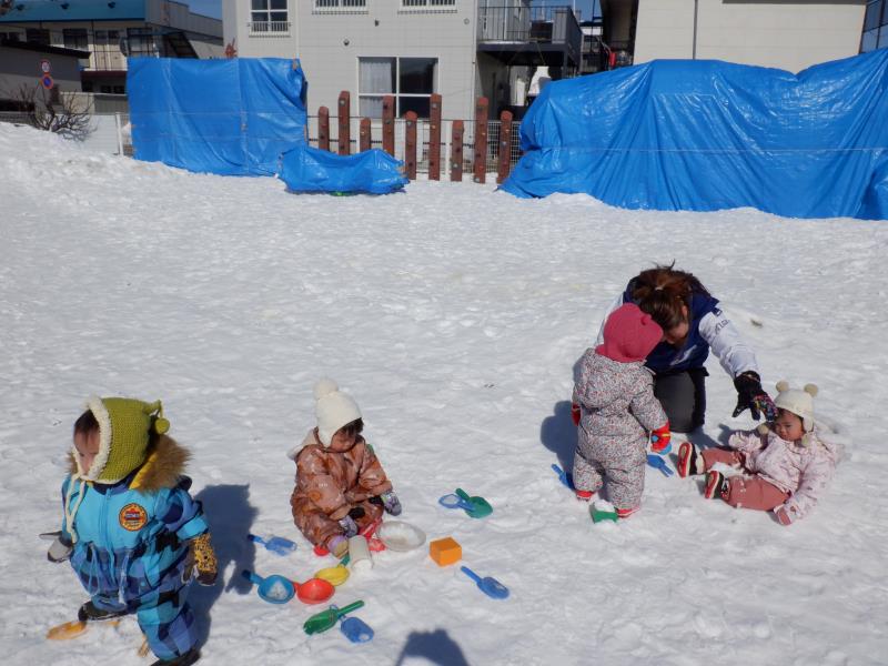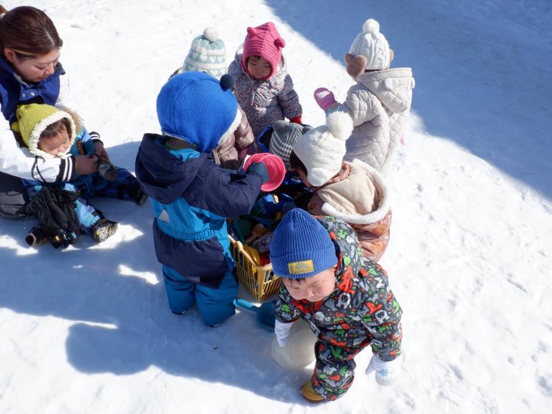 雪解けしてきていますが、まだまだ雪あそびを満喫中♪