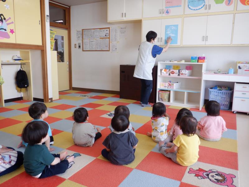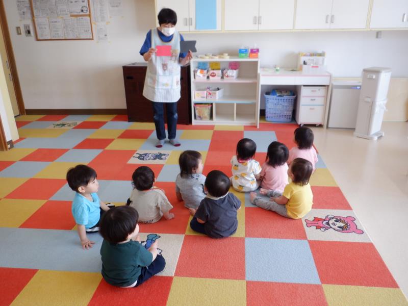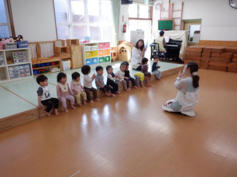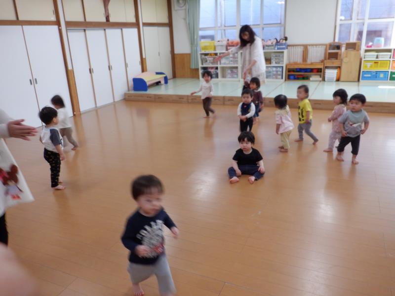 ちゅうりっぷさん、遊戯室でお歌をうたったり、リズムあそび♪
