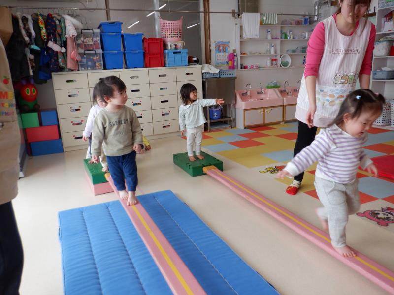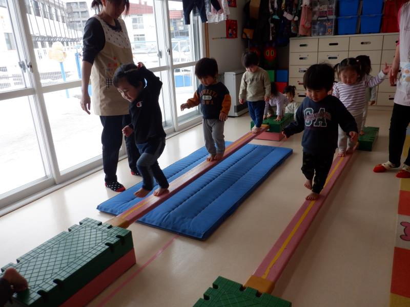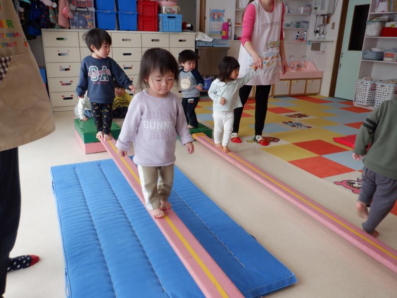 平均台にも挑戦し、前を向いてバランスをとって渡る姿に成長を感じましたよ☺