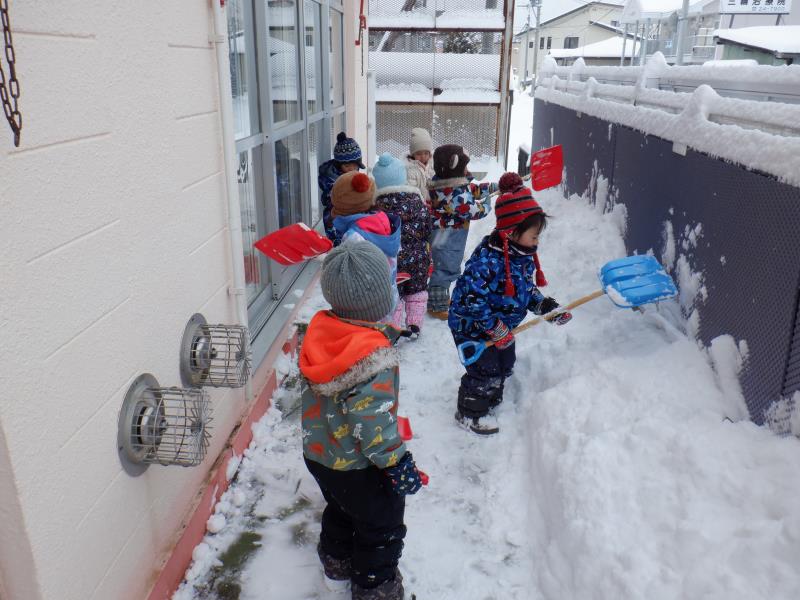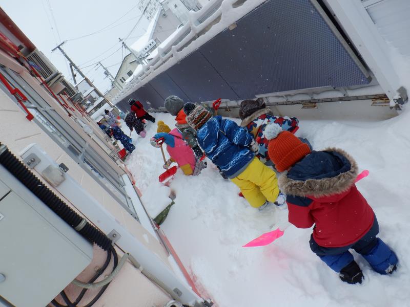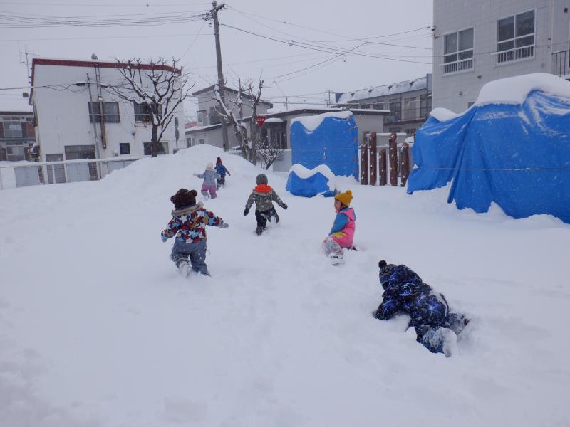 さくらさん、張り切って園庭へ、雪ダイビング‼
