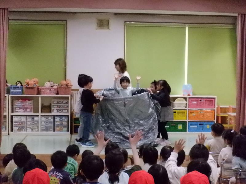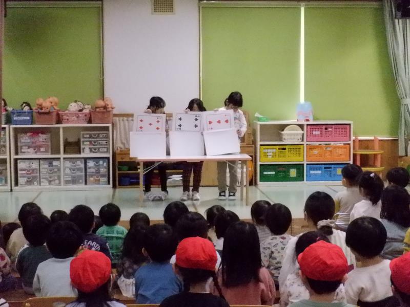 トランプの色が消えるマジックや、人が消えるマジックに、ビックリしたり笑ったり♬楽しい発表でした☺