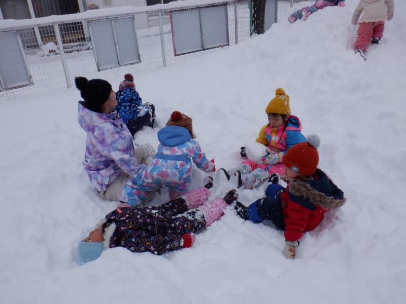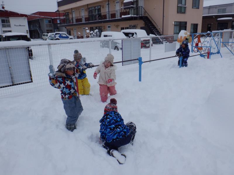 雪玉を作ったり、雪の中を泳いだり、雪遊びを