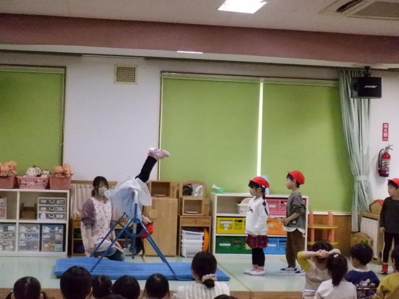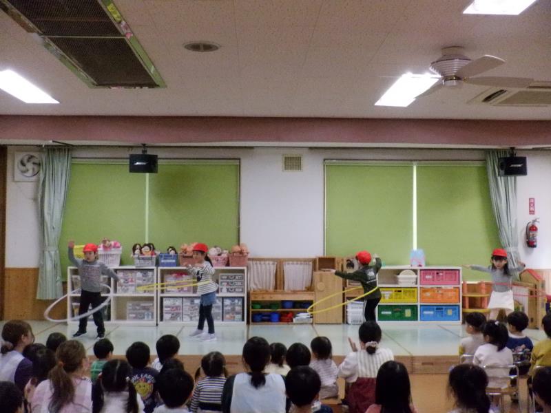 すみれさんは、マットや鉄棒、フラフープ、縄跳び、跳び箱の発表!色んな運動遊びができるようになって、成長を感じました。