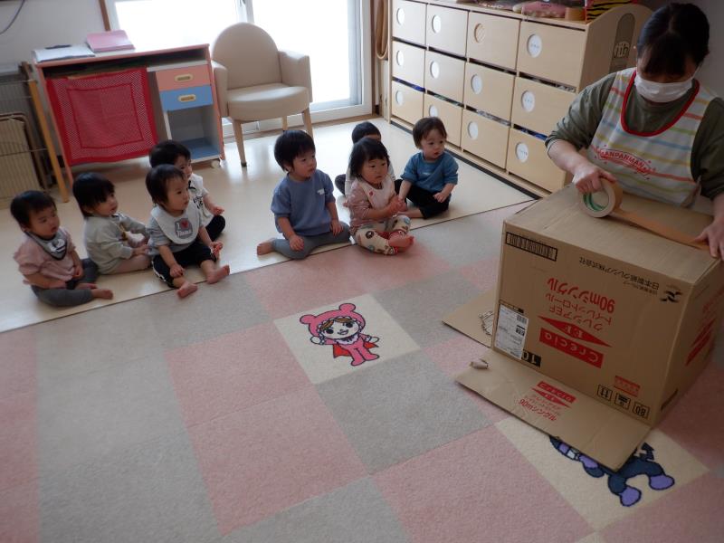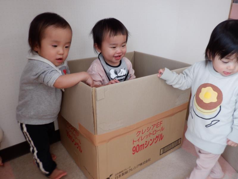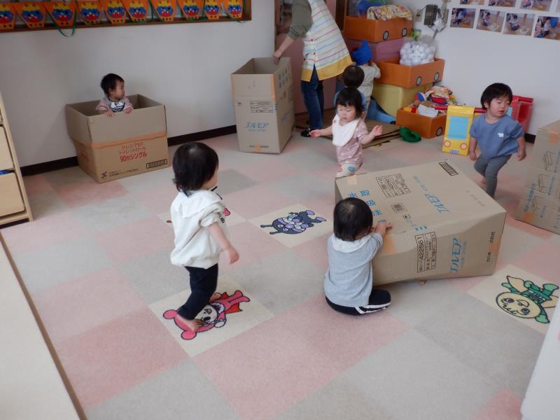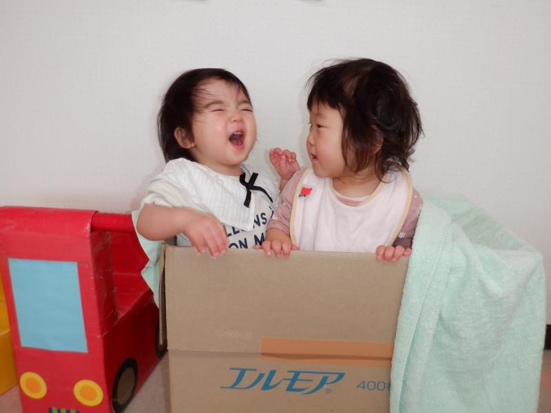 自由に中へ入ってみたり、先生が入れてあげると「いないいないばあ~!」と顔を出して楽しそう♬