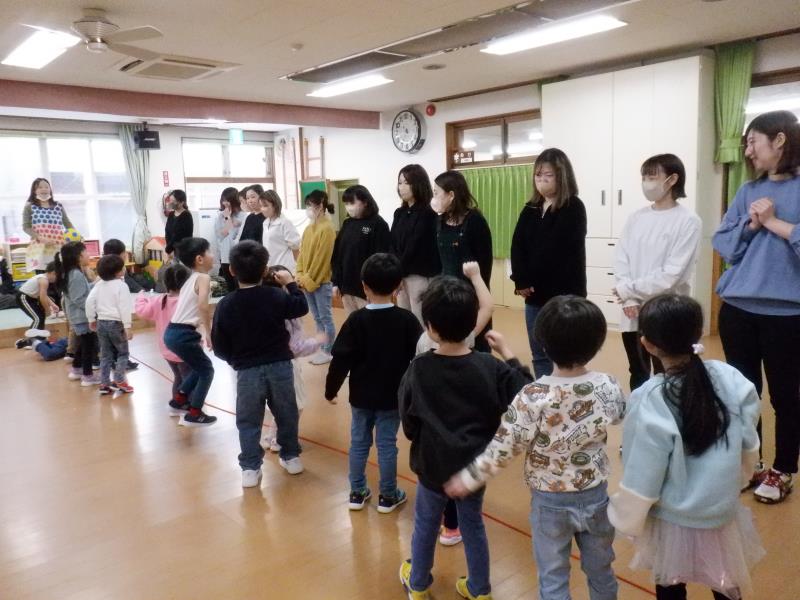朝の会の様子や、リズム運動を見てもらいましたよ。
