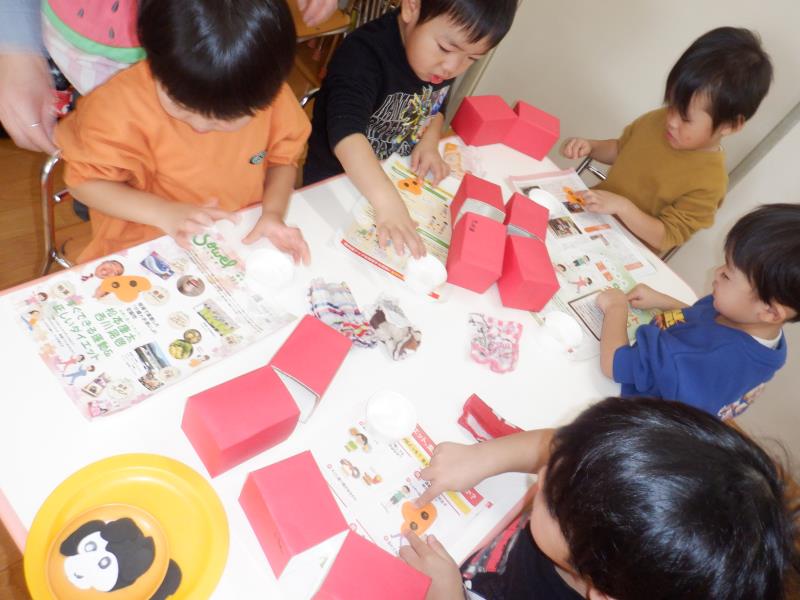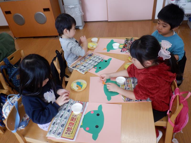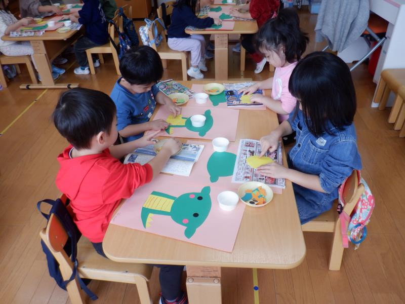 昨日、パーツをハサミで一生懸命切って、今日はそのパーツをのりで貼っていきました。