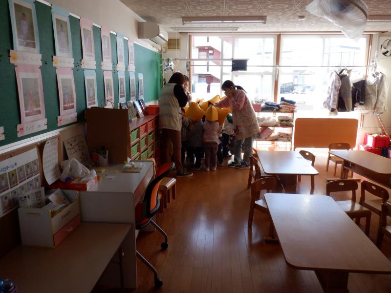 火災では、ベランダへ。みんな上手に行動出来ました。