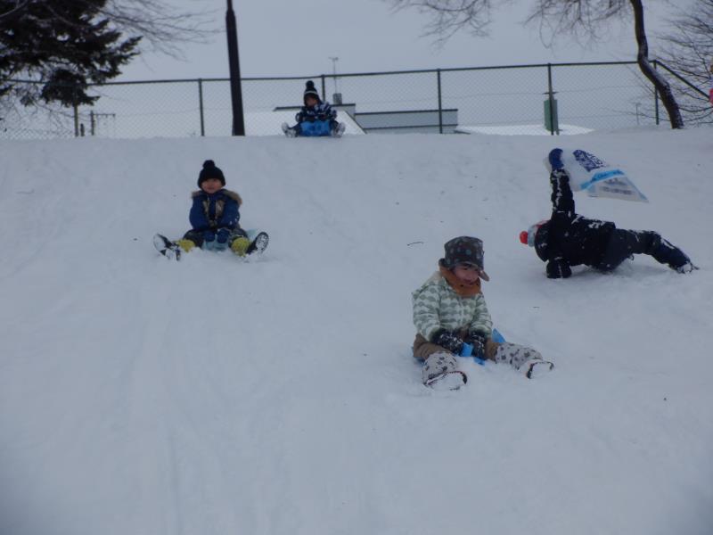 ピアソン公園まで行って、みんなでおしりすべり♪