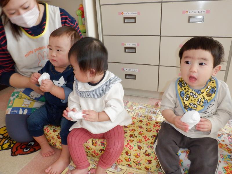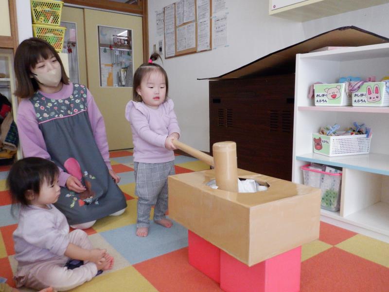 ちゅうりっぷさんは、もちつきごっこをしましたよ。