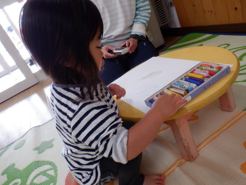 そのあとは、クレヨンでお絵描きをしたりおままごとあそびをして楽しみました。