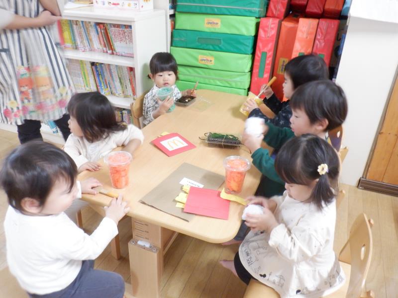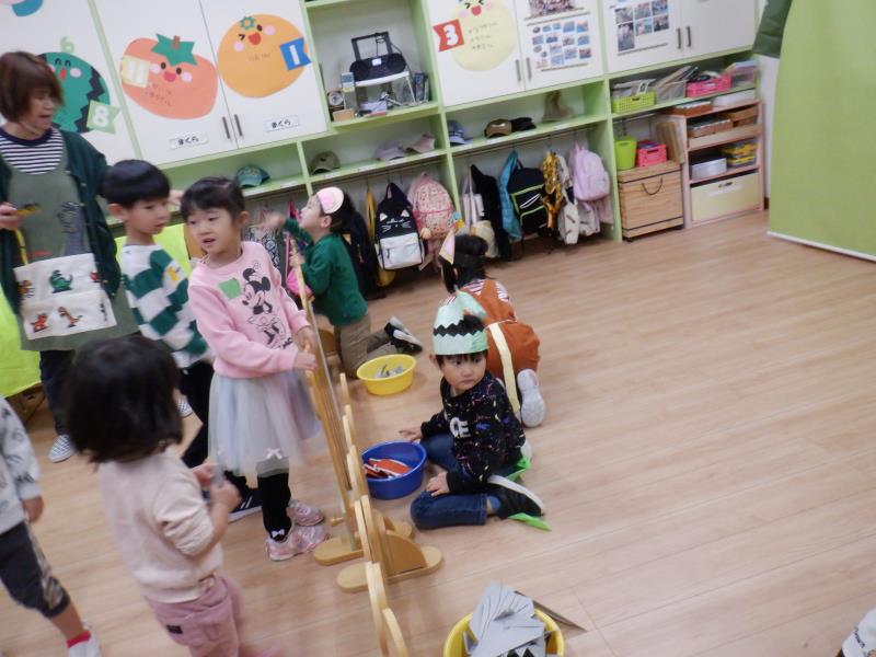 準備ができたら、小さいクラスのお友達もお客さんとして来てくれて遊んでみました☺