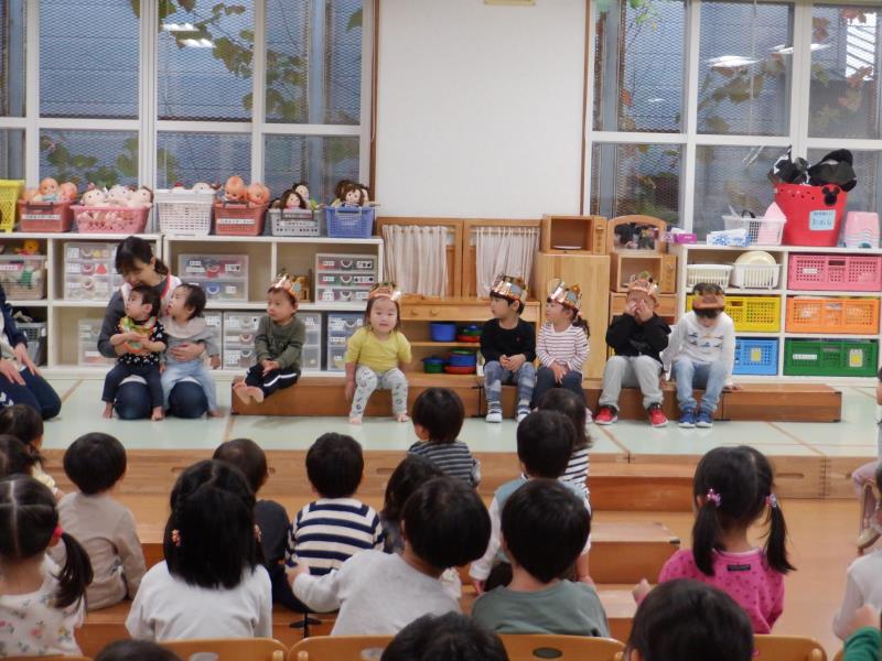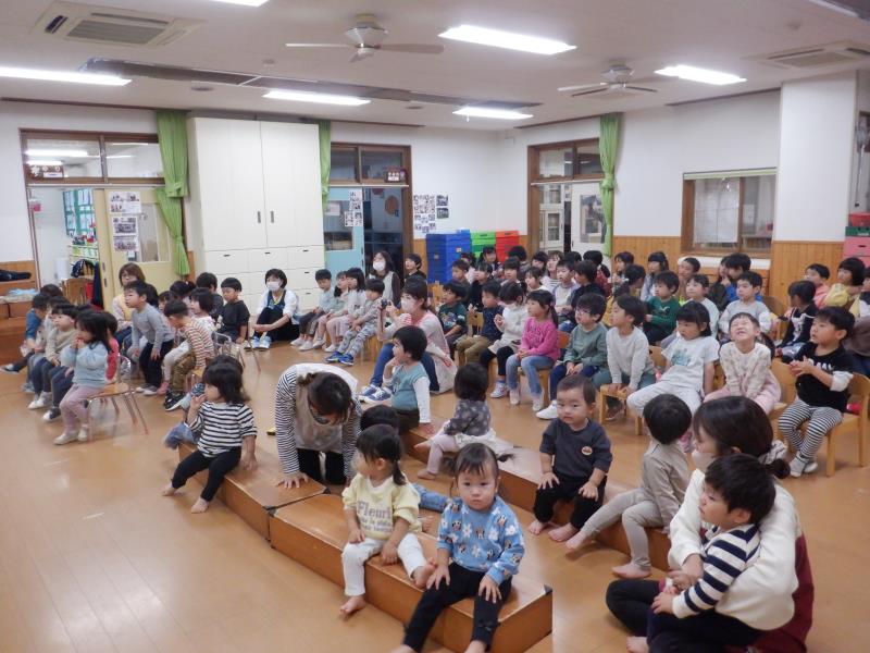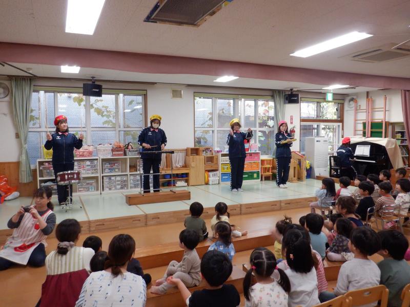 「どんぐりころころ」「山の音楽家」「まつぼっくり」を演奏し、子どもたちも曲に合わせて歌っていました。