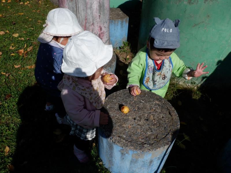 小さな姫りんごを見つけて、匂いをクンクン、お口をパクパク☺