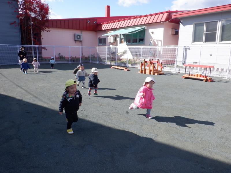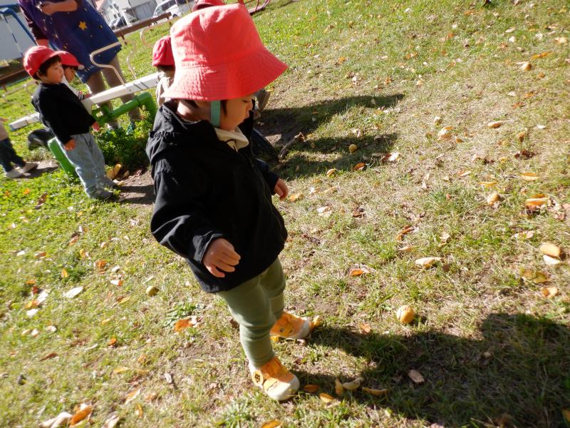 よーいどん!で、走ってみたり、落ち葉を拾ってみたり