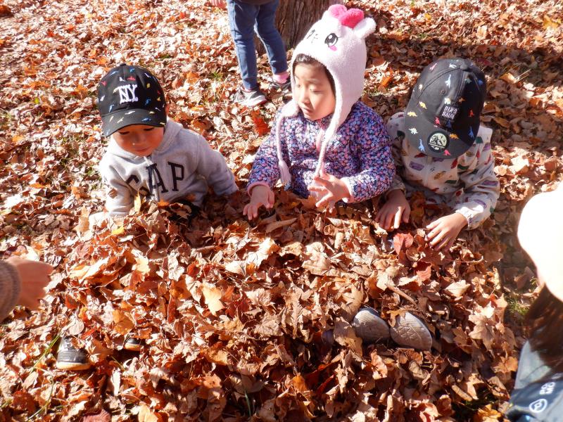 お布団にしてみたり、落ち葉あそび