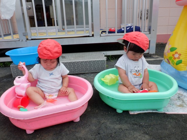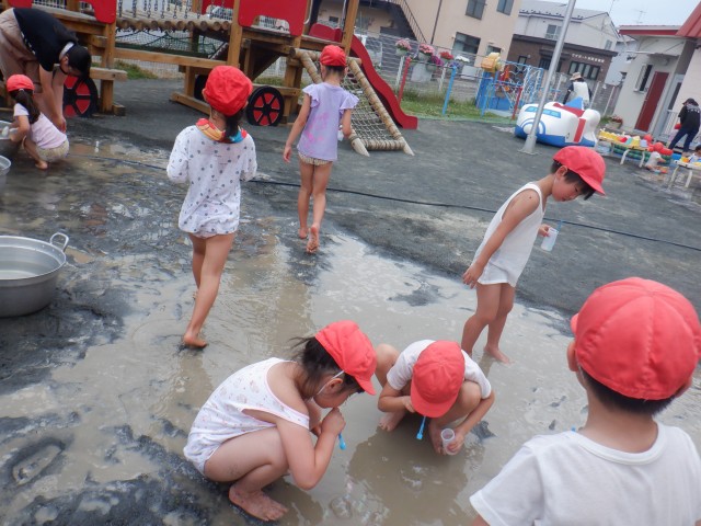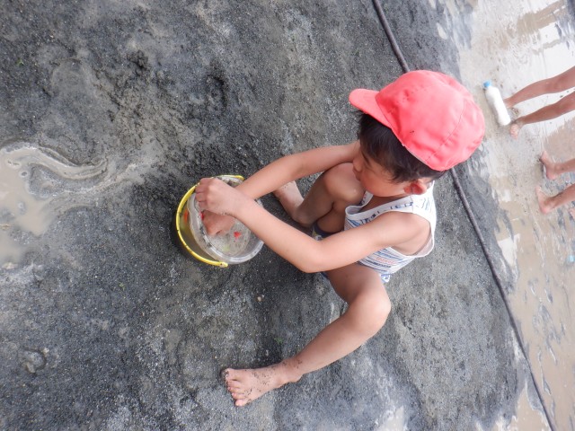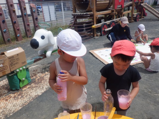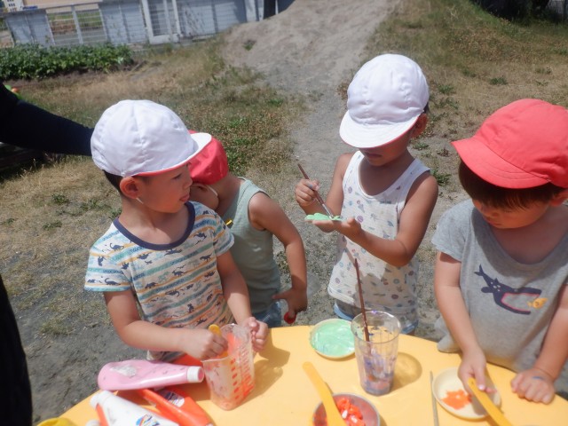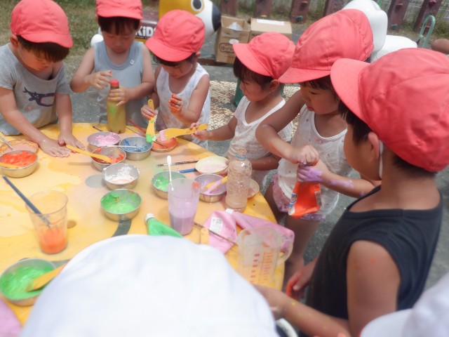 すみれさんはお庭でボディペインテング&絵の具遊び